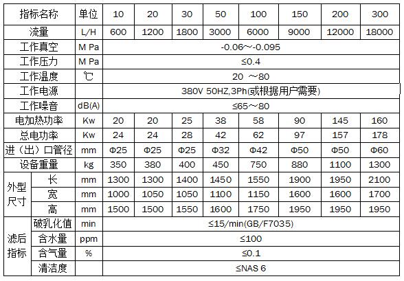 F系列液壓油防爆真空濾油機參數(shù):